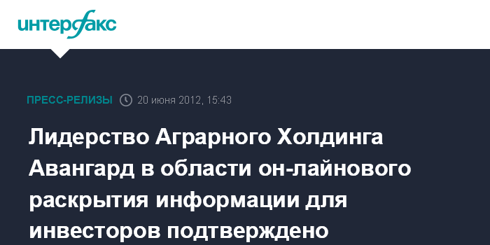 Лидерство Аграрного Холдинга Авангард в области он-лайнового раскрытия информации для инвесторов подтверждено независимым исследованием