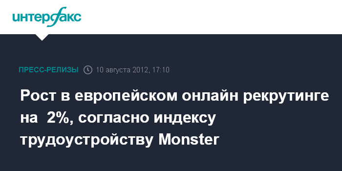 Рост в европейском онлайн рекрутинге на 2%, согласно индексу трудоустройству Monster