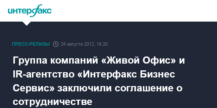 Группа компаний «Живой Офис» и IR-агентство «Интерфакс Бизнес Сервис» заключили соглашение о сотрудничестве