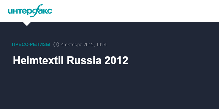 Международная выставка домашнего текстиля и тканей для оформления интерьеров Heimtextil Russia 2012 прошла с 26 по 28 сентября в Москве, разделив выставочное пространство МВЦ «Крокус Экспо» с одними из ключевых проектов индустрии – немецкими брендами Domotex Russia (Deutsche Messe) и R+T Russia (Messe Stuttgart). Данное трио создало исключительное выставочное пространство для профессионалов индустрии и позволило посетителям выставки ознакомиться с широким спектром продукции для комплексного оформления интерьеров. На протяжении 14 лет существования на Российском рынке выставочных услуг проект Heimtextil Russia остается лидирующим, создавая свою собственную философию и следуя современным модным текстильным и дизайнерским тенденциям.