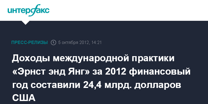 Доходы международной практики «Эрнст энд Янг» за 2012 финансовый год составили 24,4 млрд. долларов США