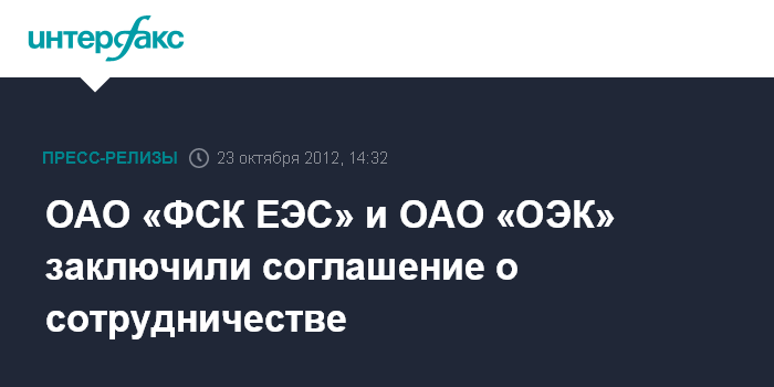 ОАО «ФСК ЕЭС» и ОАО «ОЭК» заключили соглашение о сотрудничестве