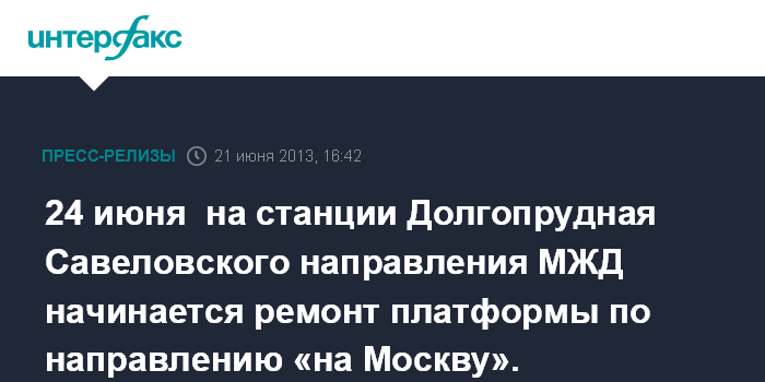 24 июня на станции Долгопрудная Савеловского направления МЖД начинается ремонт платформы по направлению «на Москву».