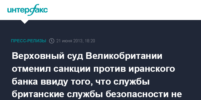 Верховный суд Великобритании отменил санкции против иранского банка ввиду того, что службы британские службы безопасности не смогли предоставить существенных доказательств