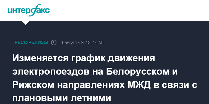Изменяется график движения электропоездов на Белорусском и Рижском направлениях МЖД в связи с плановыми летними ремонтно-путевыми работами
