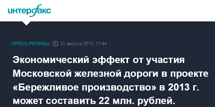 Экономический эффект от участия Московской железной дороги в проекте «Бережливое производство» в 2013 г. может составить 22 млн. рублей.