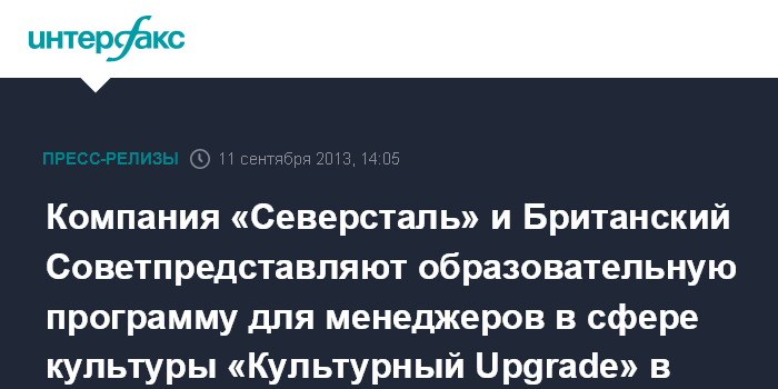 Компания «Северсталь» и Британский Совет представляют образовательную программу для менеджеров в сфере культуры «Культурный Upgrade» в 2013-2014 гг.