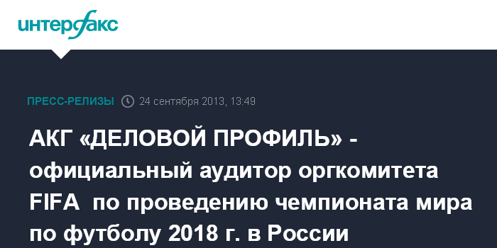 АКГ «ДЕЛОВОЙ ПРОФИЛЬ» - официальный аудитор оргкомитета FIFA по проведению чемпионата мира по футболу 2018 г. в России