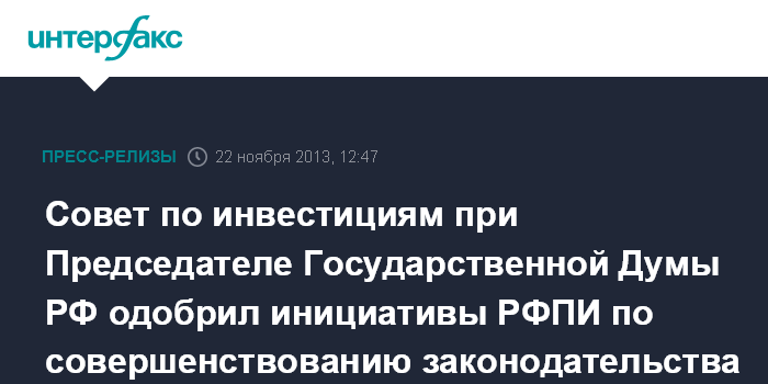 Совет по инвестициям при Председателе Государственной Думы РФ одобрил инициативы РФПИ по совершенствованию законодательства в сфере финансирования инфраструктурных проектов