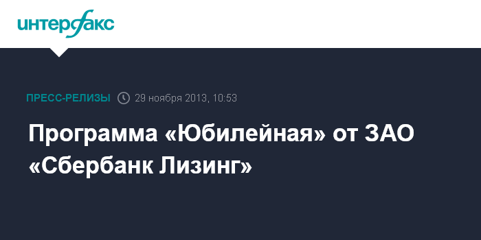 Программа «Юбилейная» от ЗАО «Сбербанк Лизинг»