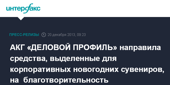 АКГ «ДЕЛОВОЙ ПРОФИЛЬ» направила средства, выделенные для корпоративных новогодних сувениров, на благотворительность
