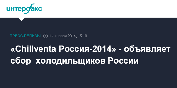 «Chillventa Россия-2014» - объявляет сбор холодильщиков России