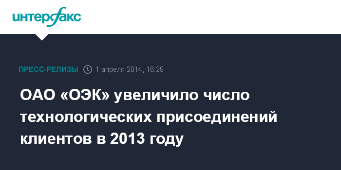 ОАО «Объединенная энергетическая компания» в 2013 году зафиксировало рост количества технологических присоединений (ТП) клиентов по сравнению с предыдущим годом