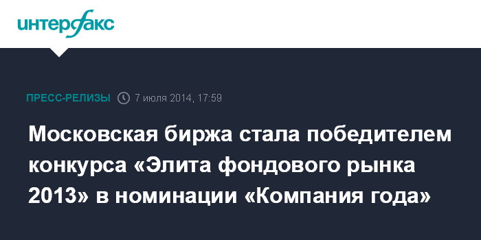 Московская биржа стала победителем конкурса «Элита фондового рынка 2013» в номинации «Компания года»