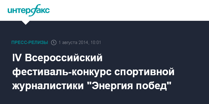 В рамках проекта "Газпром 2014" c 1 августа 2014 г. стартует IV Всероссийский фестиваль-конкурс спортивной журналистики "Энергия побед". Целью конкурса является повышение качества спортивной журналистики и популяризация спортивной информации в СМИ.