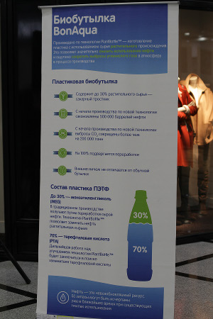 Компания Coca-Cola, которой принадлежит бренд BonAqua, решила пойти дальше и «начать с себя». По заказу компании была разработана уникальная технология, которая позволяет использовать в производстве пластика для бутылок до 30% растительного сырья, в частности из отходов тростника, используемого при производстве сахара. Из растительного сырья производят один из двух ключевых компонентов пластика, который получают путем переработки сырой нефти. Остальные 70% состава приходятся на терефталевую кислоту (PТА).