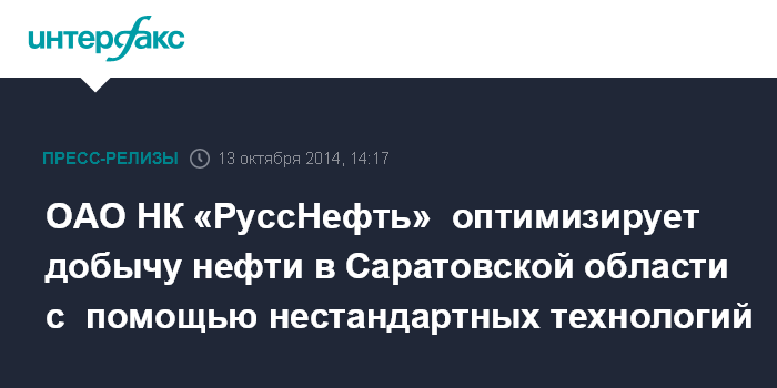 ОАО НК «РуссНефть» оптимизирует добычу нефти в Саратовской области с помощью нестандартных технологий