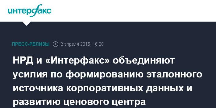 Москва, 2 апреля 2015 г. - Национальный расчетный депозитарий (НРД) и информационное агентство «Интерфакс» объявили о начале реализации совместного проекта по сбору, верификации и распространению корпоративной информации.