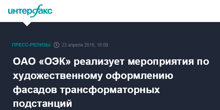 В рамках реализации мероприятий по текущему ремонту и художественному оформлению трансформаторных подстанций и распределительных пунктов (ТП И РТП) ОАО «Объединенная энергетическая компания» в 2015 году планирует раскраску 95 объектов.