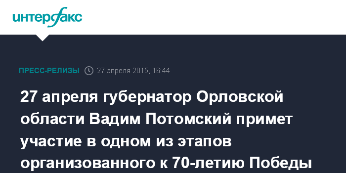 27 апреля губернатор Орловской области Вадим Потомский примет участие в одном из этапов организованного к 70-летию Победы мотопробега байкерского клуба «Ночные волки»
