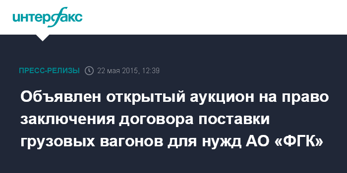 19 мая 2015 года объявлен открытый аукцион на право заключения договора поставки грузовых вагонов для нужд АО «ФГК» в 2015 году, в рамках которого планируется поставка 200 единиц универсальных вагонов-платформ. Проведение открытого аукциона состоится 22 июня 2015 года. Закупка реализуется в рамках инвестиционной программы обновления подвижного состава АО «ФГК» на 2015 год.