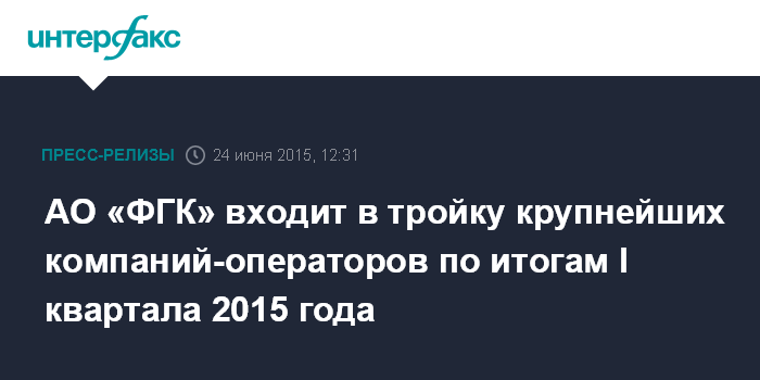 АО «ФГК» входит в тройку крупнейших компаний-операторов по итогам I квартала 2015 года