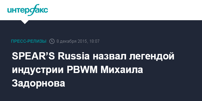 SPEAR’S Russia назвал легендой индустрии PBWM Михаила Задорнова