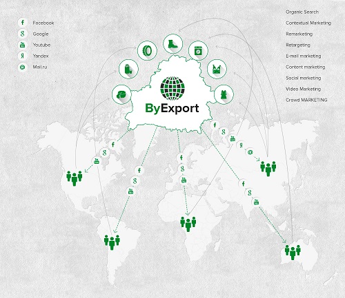 ByExport.com — новый для стран СНГ портал, основная цель которого заключается в онлайн-продвижении товаров белорусских производителей за рубежом. Необходимость создания такого сайта назревала давно. Уже на стадии запуска проекта крупнейшие холдинги Беларуси поддержали и оценили его как эффективный и необходимый инструмент современного маркетинга.