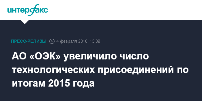 АО «Объединенная энергетическая компания» в 2015 году увеличило число технологических присоединений в 6,5 раз по сравнению с 2014 годом. Всего за последние 12 месяцев поступило 15 480 заявок с целью осуществления нового технологического присоединения.