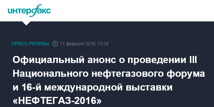 Официальный анонс о проведении III Национального нефтегазового форума и 16-й международной выставки «НЕФТЕГАЗ-2016»