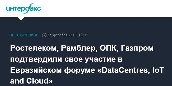 Ростелеком, Рамблер, ОПК, Газпром подтвердили свое участие в Евразийском форуме «DataCentres, IoT and Cloud»