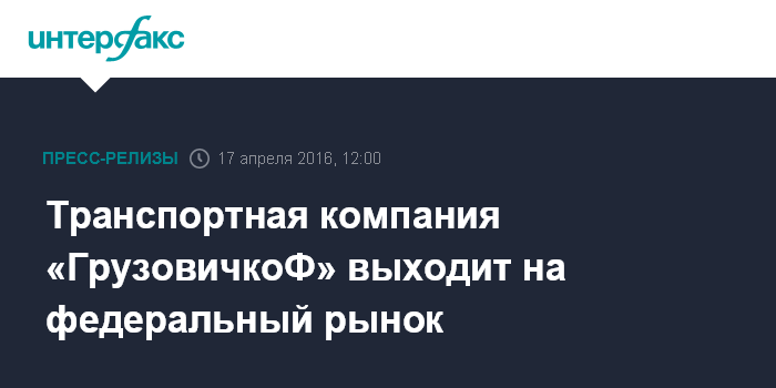 Транспортная компания «ГрузовичкоФ» выходит на федеральный рынок