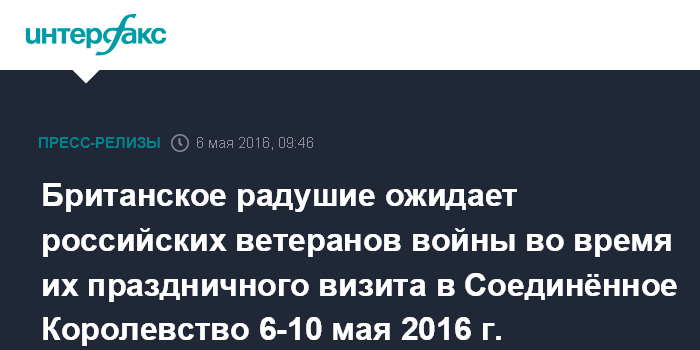 Британское радушие ожидает российских ветеранов войны во время их праздничного визита в Соединённое Королевство 6-10 мая 2016 г.