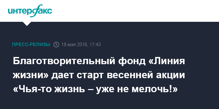 Благотворительный фонд «Линия жизни» дает старт весенней акции «Чья-то жизнь – уже не мелочь!»