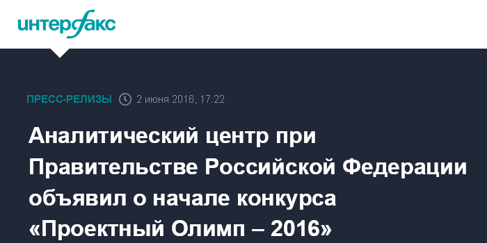 Аналитический центр при Правительстве Российской Федерации объявил о начале конкурса «Проектный Олимп – 2016»