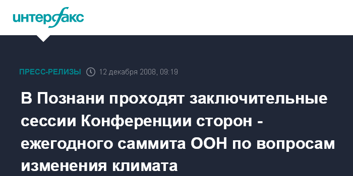 BUSINESS WIRE - В Познани проходят заключительные сессии Конференции сторон (COP14) - ежегодного саммита ООН по вопросам изменения климата