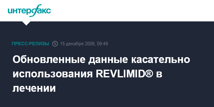 Будри (Швейцария). 9 декабря BUSINESS WIRE – Обновленные данные касательно использования REVLIMID® в лечении вновь диагностированной множественной миеломы говорят о беспрецедентной трехлетней выживаемости ходе исследования фазы III.