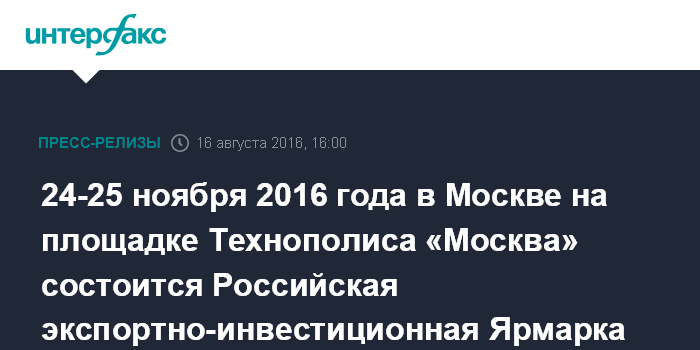 24-25 ноября 2016 года в Москве на площадке Технополиса «Москва» состоится Российская экспортно-инвестиционная Ярмарка REIF