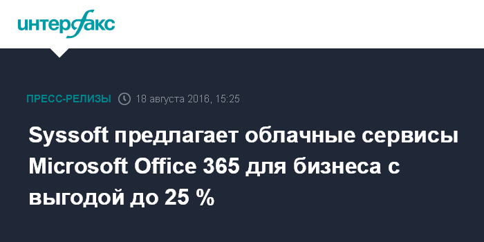 Syssoft предлагает облачные сервисы Microsoft Office 365 для бизнеса с выгодой до 25 %