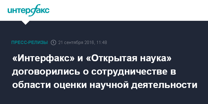 «Интерфакс» и «Открытая наука» договорились о сотрудничестве в области оценки научной деятельности