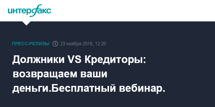 Должники VS Кредиторы: возвращаем ваши деньги.Бесплатный вебинар.