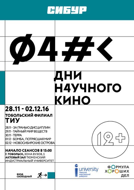 Тобольск, 23 ноября 2016 года. Второй год подряд при поддержке СИБУРа и Министерства образования и науки РФ в рамках Фестиваля актуального научного кино (ФАНК) в Тобольске пройдет бесплатный показ документальных фильмов о науке и технологиях, а также лекции и мастер-классы от ученых и экспертов.