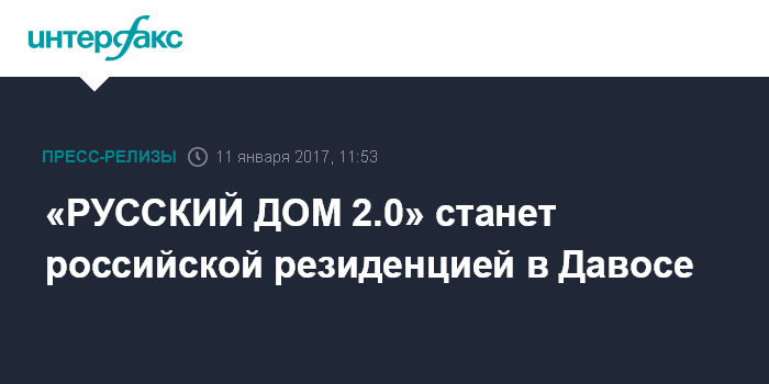 «РУССКИЙ ДОМ 2.0» станет российской резиденцией в Давосе