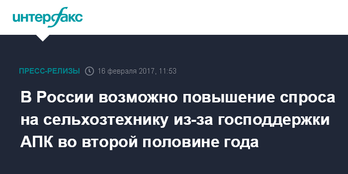 В России возможно повышение спроса на сельхозтехнику из-за господдержки АПК во второй половине года