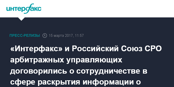 «Интерфакс» и Российский Союз СРО арбитражных управляющих договорились о сотрудничестве в сфере раскрытия информации о процедурах банкротства