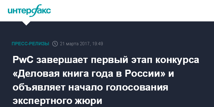 PwC завершает первый этап конкурса «Деловая книга года в России» и объявляет начало голосования экспертного жюри