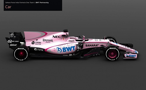 Ведущая европейская компания в области технологий очистки воды – BWT придала команде Формулы-1 «Sahara Force India» совершенно новый облик. В соревнованиях Формулы-1 (сезон 2017 года) Sahara Force India будет участвовать на болиде VJM10, окрашенном в розовые, фуксиево-красные и серебристые тона. Это – четкий сигнал долгосрочности партнерства между командой Sahara Force India и австрийской компанией BWT, производителем оборудования для водоочистки и водоподготовки. Впервые новая цветовая гамма машины была представлена публике на открытии сезона, во время Гран-при Австралии в Мельбурне.