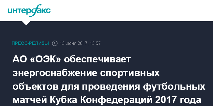 АО «Объединенная энергетическая компания» реализует комплекс мероприятий по обеспечению энергоснабжения объектов, которые будут принимать участников и гостей футбольных матчей Кубка Конфедераций 2017 года и Чемпионата мира 2018 года.