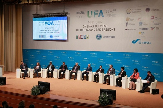 Форум открылся пленарным заседанием «Особенности, роль и место малого бизнеса в экономике регионов стран-участниц ШОС и БРИКС. Достижения и проблемы». Модератором встречи стал вице-президент Торгово-промышленной палаты Республики Башкортостан Дмитрий Шаронов. Мероприятие началось с выступления главы Республики Башкортостан Рустэма Хамитова, сделавшего в своем докладе упор на динамичный рост малого бизнеса в возглавляемом им регионе. Елена Дыбова, вице-президент Торгово-промышленной палаты Российской Федерации, в своем выступлении остановилась на том, что связи между представителями Шанхайской Организации Сотрудничества сейчас только налаживаются и перспективы у данного объединения действительно колоссальные.