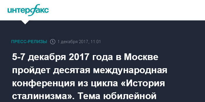 5-7 декабря 2017 года в Москве пройдет десятая международная конференция из цикла «История сталинизма». Тема юбилейной конференции: «Уроки Октября и практики советской системы. 1920 – 1950 годы»